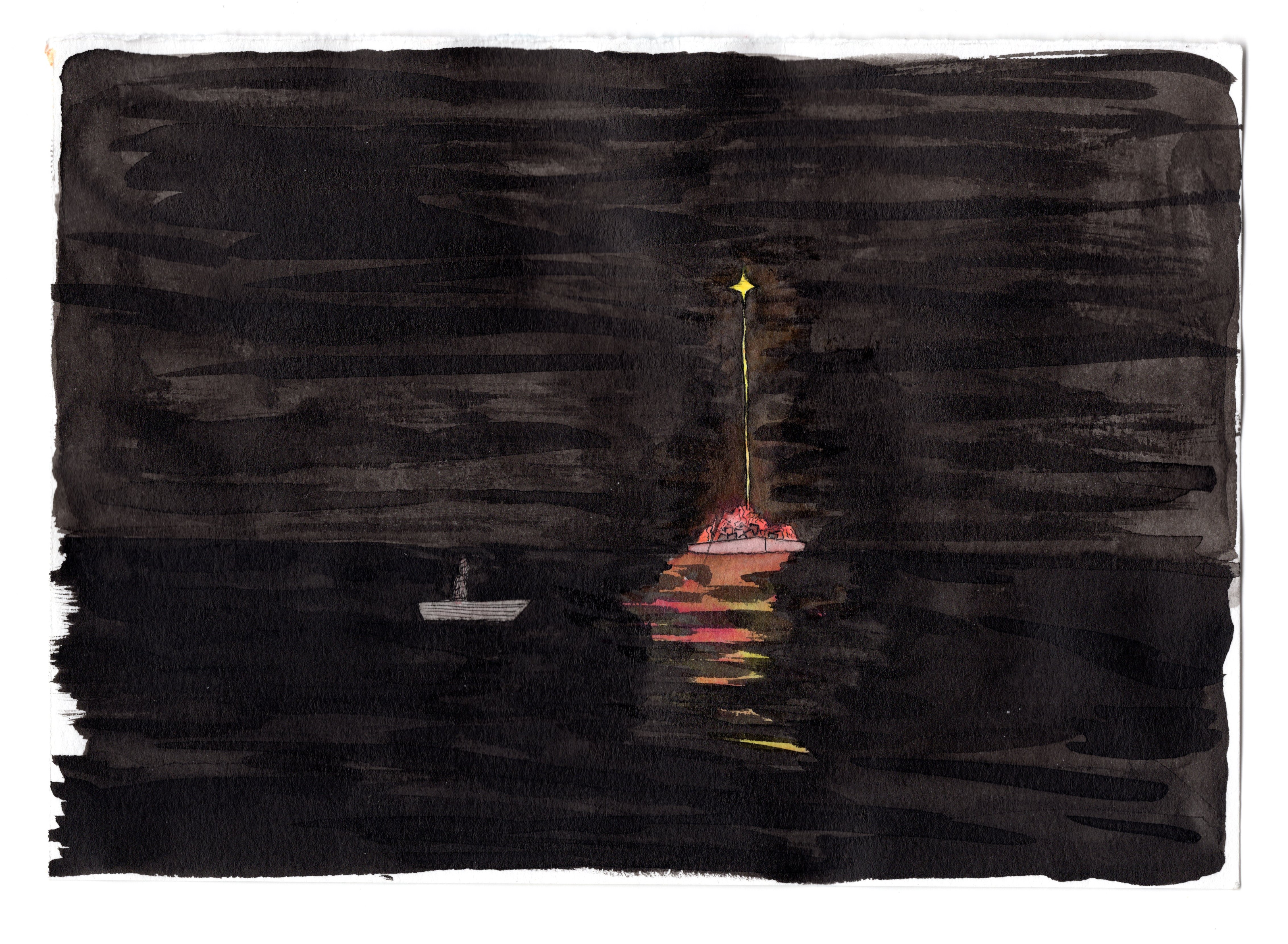 After failing to reach Canada due to car trouble we went to Peak’s, a small island off the coast of Portland. The official 4th of July fireworks had been cancelled due to foggy weather but that didn’t stop Dickey from loading up a raft with explosives setting it ablaze to honor the USA.